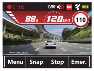 Apart from recording car speed, the customized speed reminder reminds drivers with a sound when speed limit is exceeded.